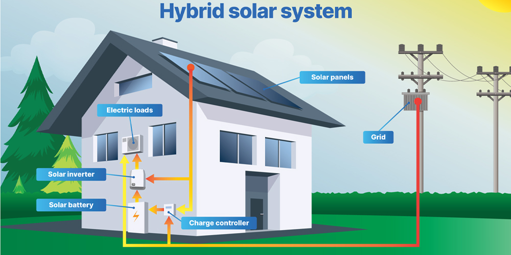 Flexion Energy Private Limited offers advanced Hybrid Solar System solutions designed to provide uninterrupted, efficient, and cost-effective power for homes and businesses. A hybrid system intelligently integrates solar panels, battery storage, and grid connectivity to ensure a continuous electricity supply, even during power cuts or low sunlight conditions. Excess solar energy is stored for later use, reducing grid dependency and significantly lowering electricity bills.